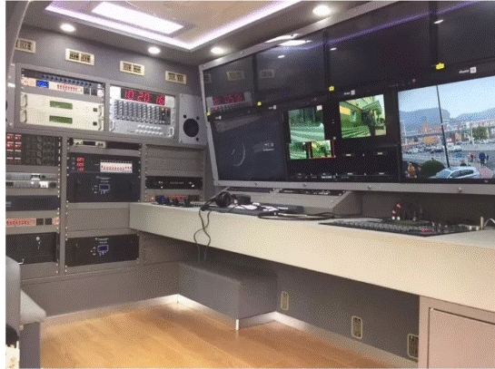 中科工作人员接到任务后,在厂长李龙钦的带领下对直播车的内饰进行了设计规划,车内分为音频区、技术区、导播区三个功能区,,仅仅两个月时间,便全部完成4+2讯道高清数字电视直播车装配与调试。