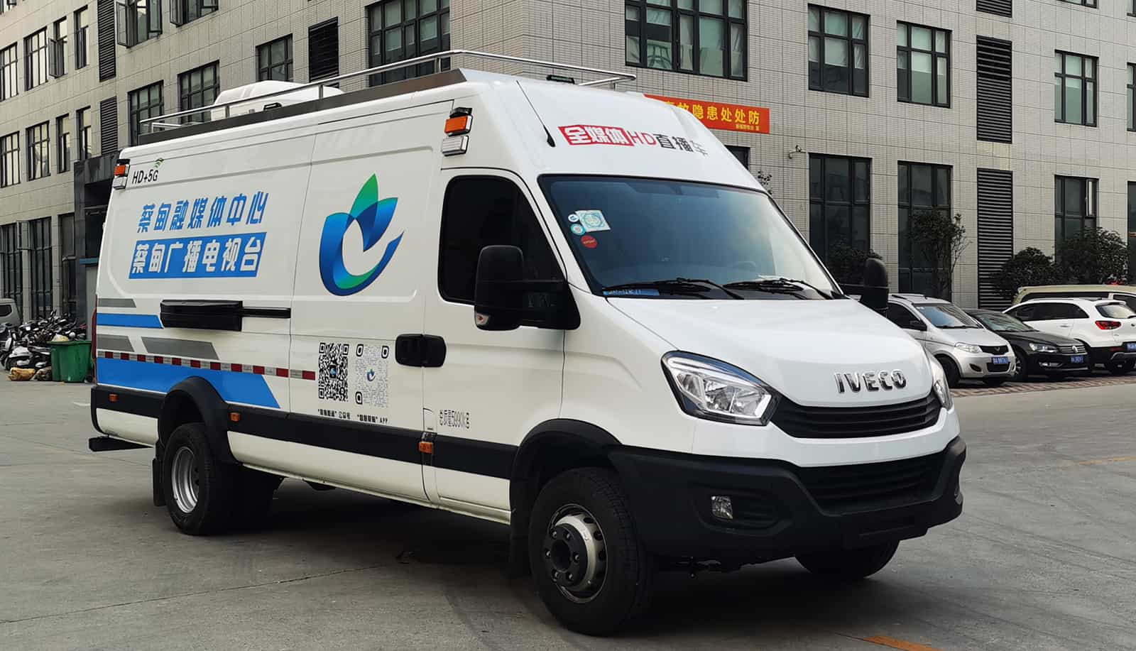 蔡甸区全媒体直播车采用依维柯欧胜底盘,此车配备3.0T发动机。外观大气,动力强劲。